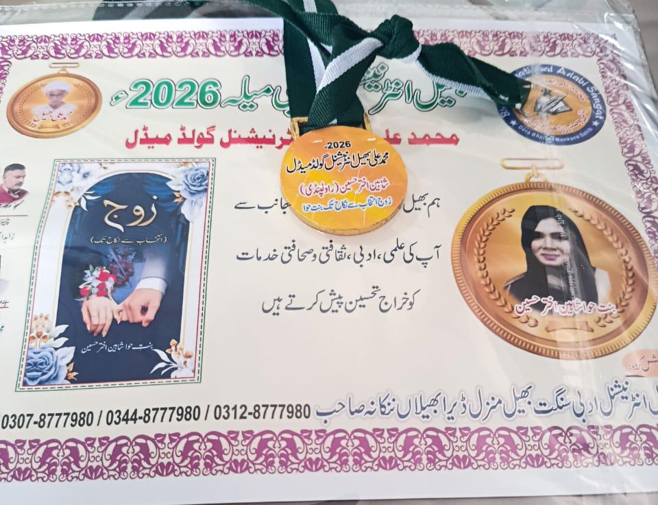 Book Literary Excellence Recognized: “Zauj” Receives Gold Medal Award 2026 In a remarkable celebration of literary achievement and intellectual contribution, the book “Zauj” was honored with the Gold Medal Award April 6, 2026